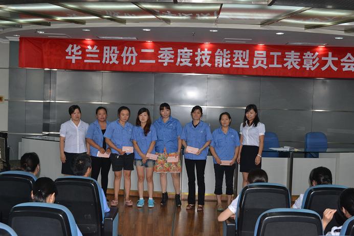 4月,公司根據《給技能型一線員工激勵政策的通告》規定對膠塞生產部一線員工第一季度工作進行技能評定,并對考評結果發放技能補貼,此項政策取得了員工的一致好評。9月19日,值中秋佳節之際,華蘭股份第二季度技能型員工表彰大會在公司七樓會議式正式召開。總經理對此次會議的召開給予重視,并親自參會頒發獎金。